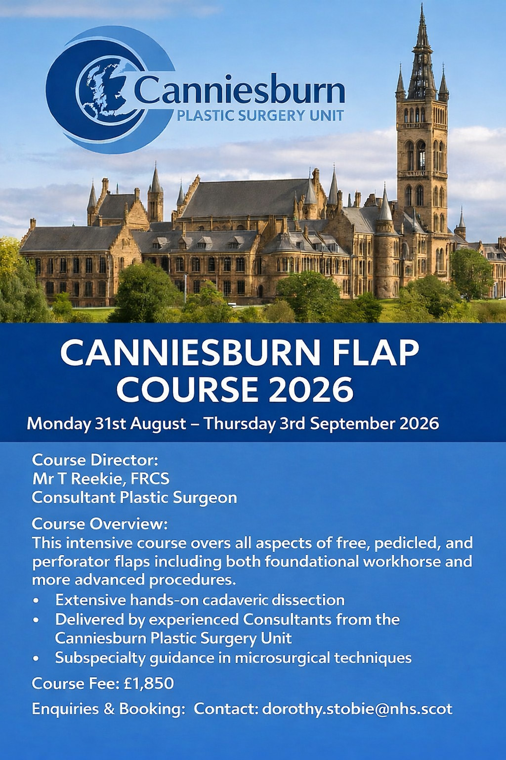 ![]() | 31st August - 03rd September 2026 | Canniesburn Flap Course 2026 Enquires & Booking: dorothy.stobie@nhs.scot Flyer: Download |